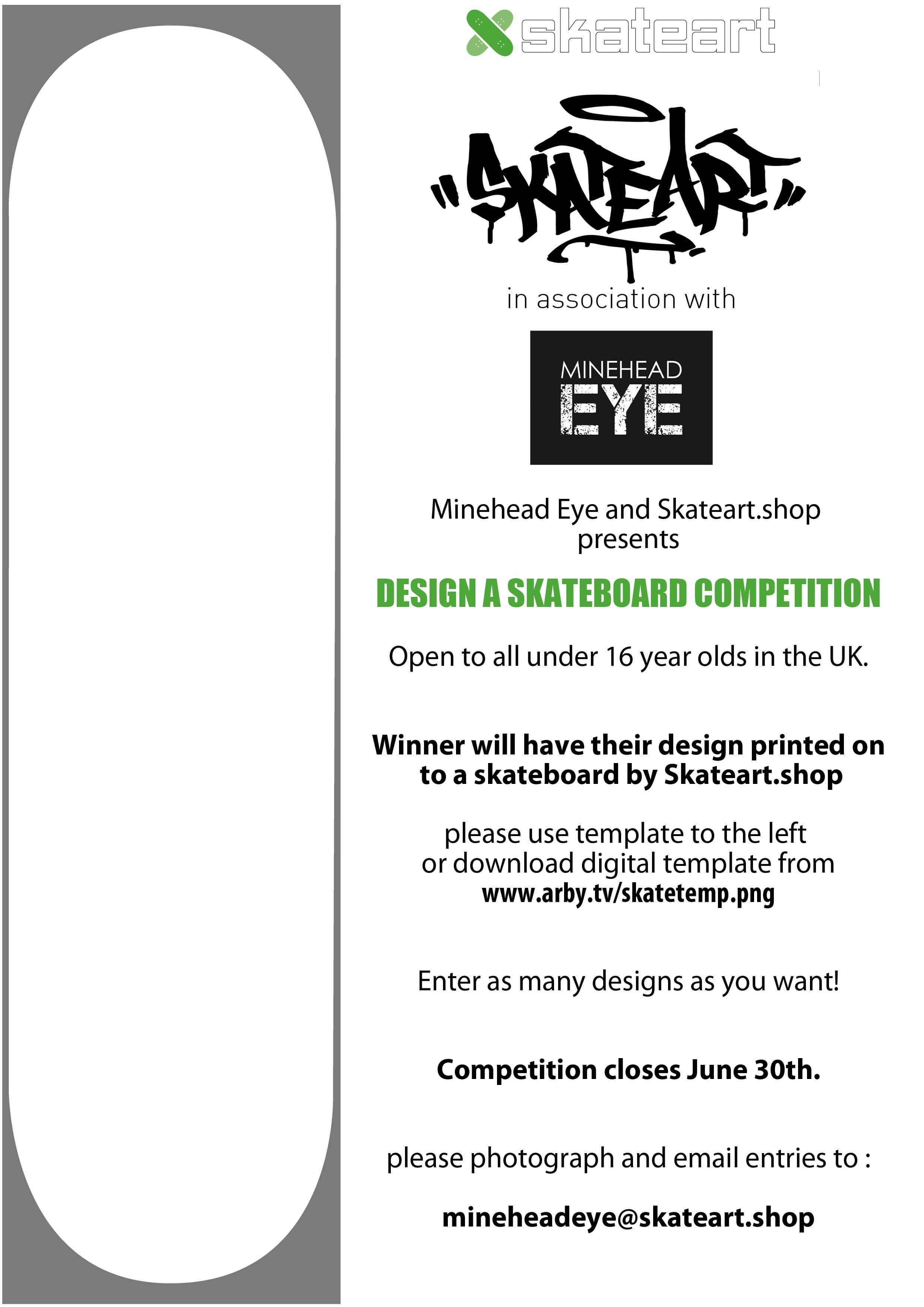 Today’s contained art challenge comes from our friends across the bay at Minehead Eye. They’re asking young people to create their ideal skateboard design. Send them a picture by 30th June for your chance to win your design printed onto a brand new skateboard. No rules, just your creativity and imagination.